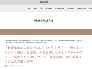 2026/01/07【プレスリリース】新規事業の失敗をゼロに。1ヶ月30万円で「勝てるデジタル設計図」を完成させる、AI×ディレクター伴走型支援サービスを開始
